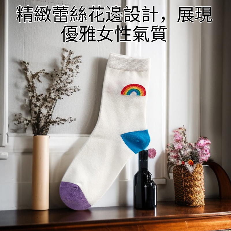白色女士蕾絲花邊短襪五雙裝